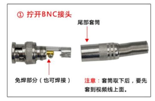 一、BNC接头接带屏蔽线的方法